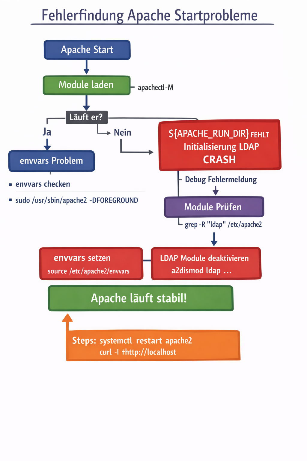 Solution: Load envvars + deactivate LDAP modules β Apache runs stably again